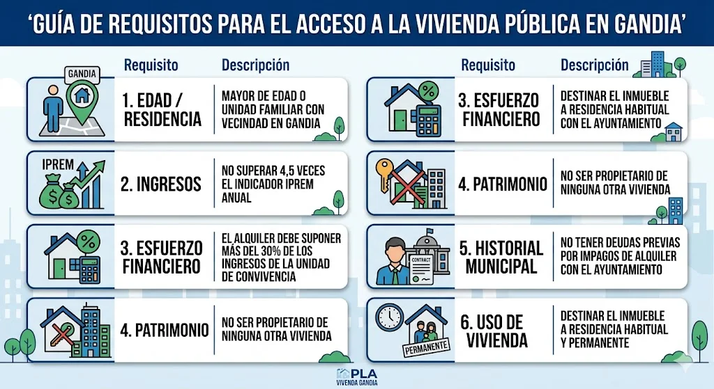| Edad/Residencia | Mayor de edad o unidad familiar con vecindad en Gandia. |