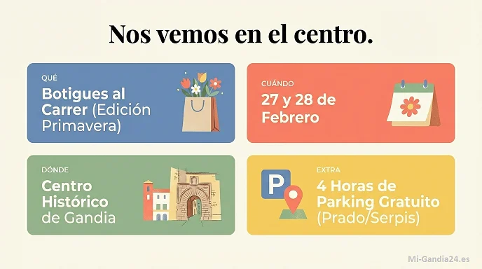 Si estás en Gandia o en la comarca de la Safor, este fin de semana tienes una cita ineludible en el Centro Histórico. ‘Botigues al Carrer’ no es solo una oportunidad para ahorrar, es una forma de apoyar a los emprendedores locales y disfrutar de la ciudad. No olvides solicitar tu ticket de parking y prepárate para dar la bienvenida a la primavera con las mejores compras.