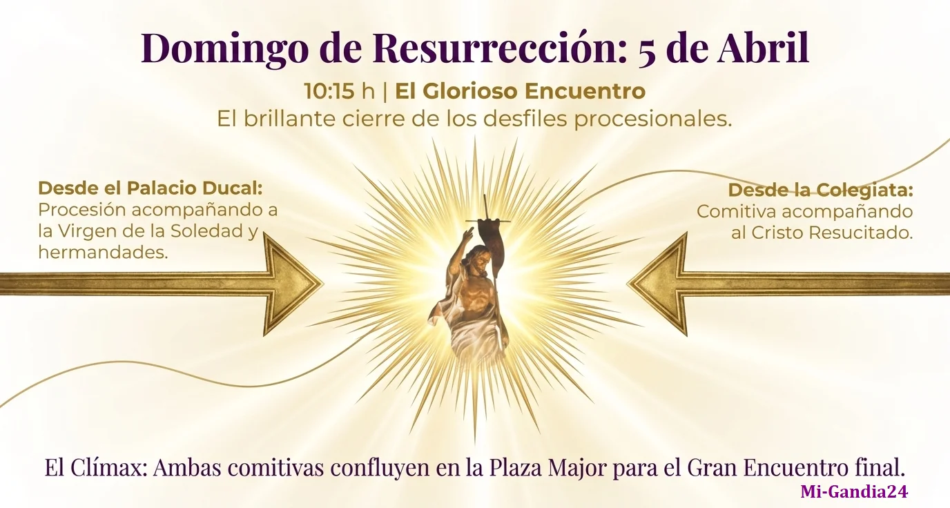¿Qué ocurre? Se celebra el Encuentro Glorioso entre la imagen de Cristo Resucitado y la Virgen de la Soledad.